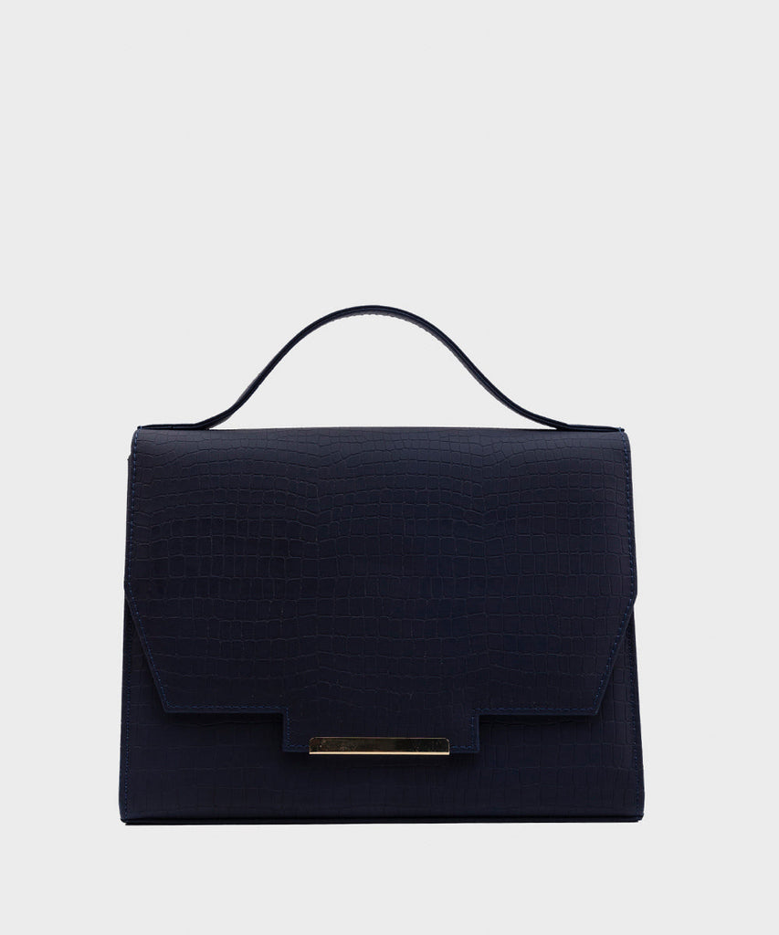 Uplift your vibe with our navy blue faux suede cross body featuring a top handle. Details: Colour: Navy Blue Material...