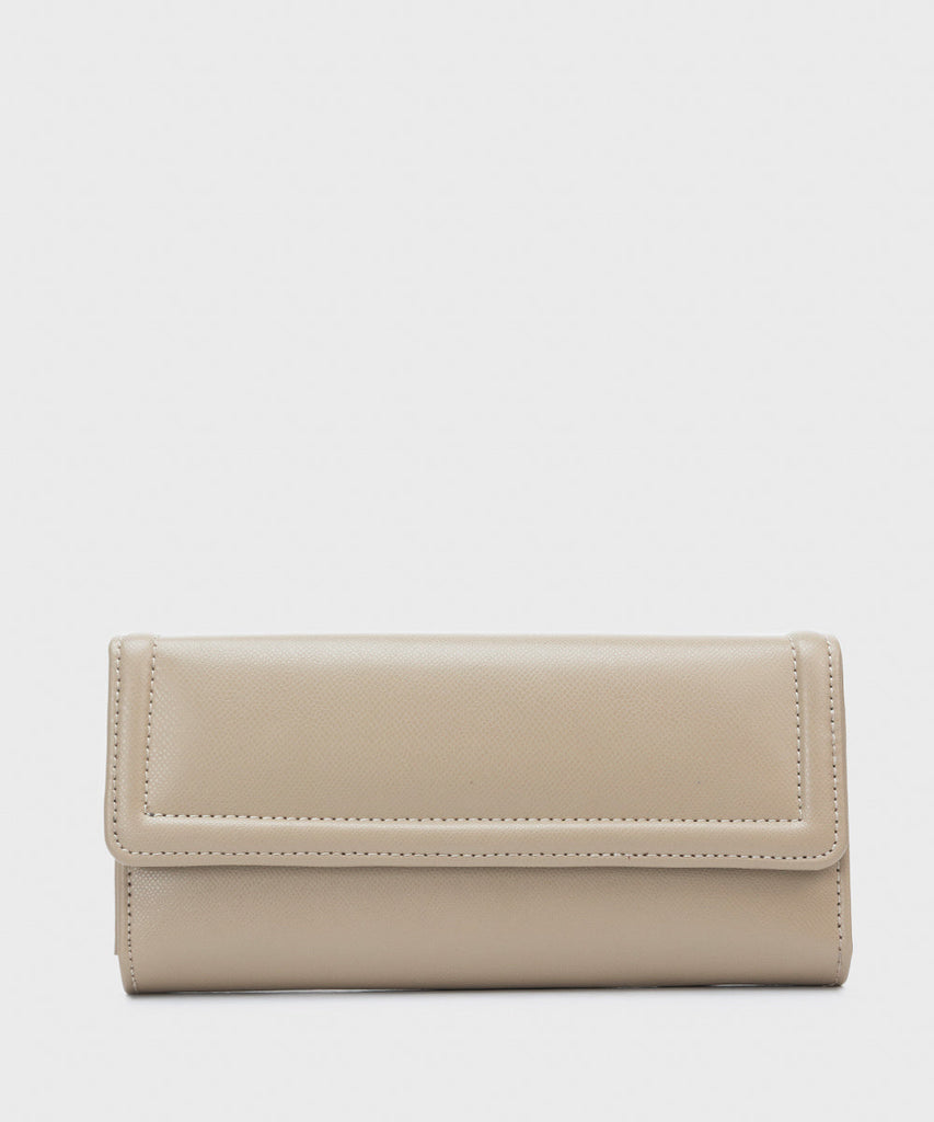 Carry your cash and cards in style with our off white, faux leather wallet accented with a metal closure.