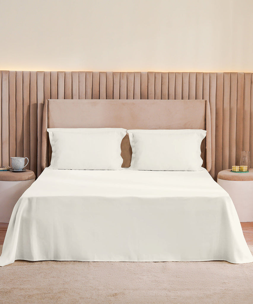 Experience spring serenity with our white, solid poly cotton bed sheet and pillowcases.