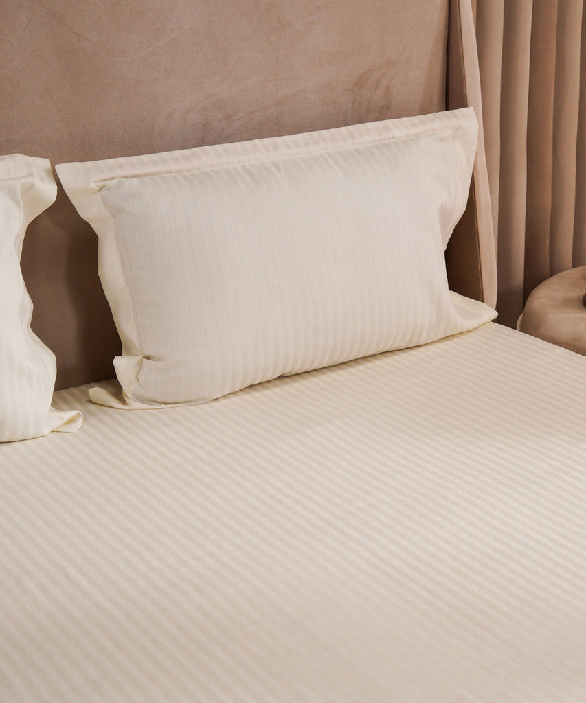 Spruce up your space with our illusion ivory solid dyed stripe sateen fitted sheet