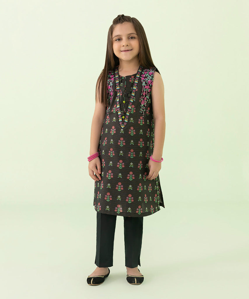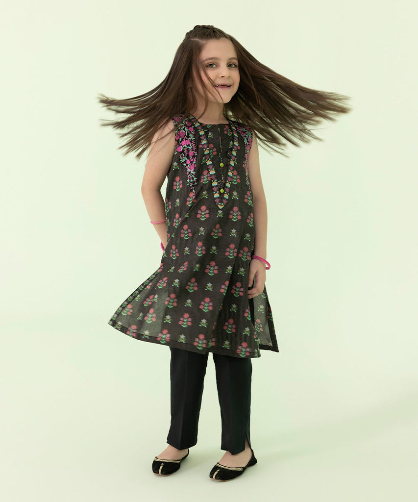 Dress your little one in our black embroidered A-line shirt featuring loop detailing.