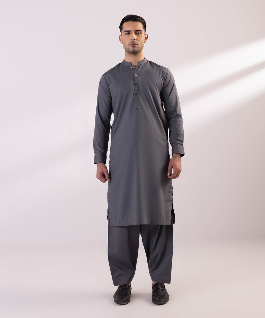 Kurta ShalwarMake a dapper statement in our lightweight, and breathable dark grey two-piece suit. With the finest qua...