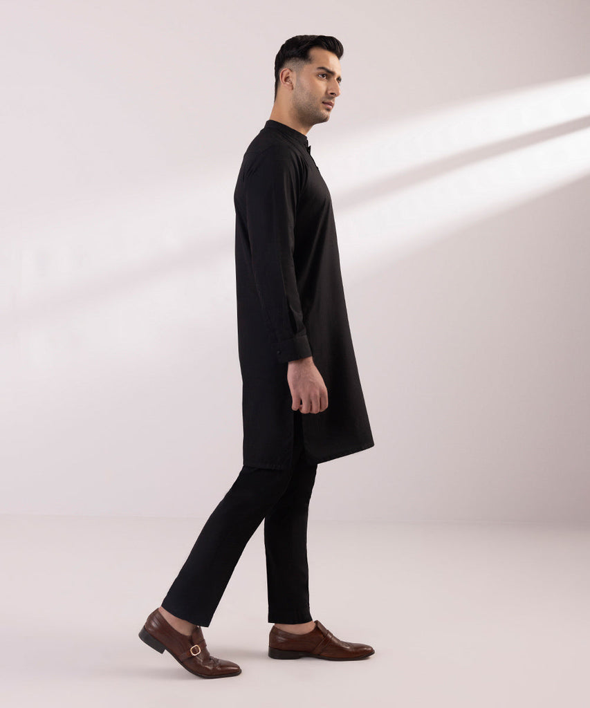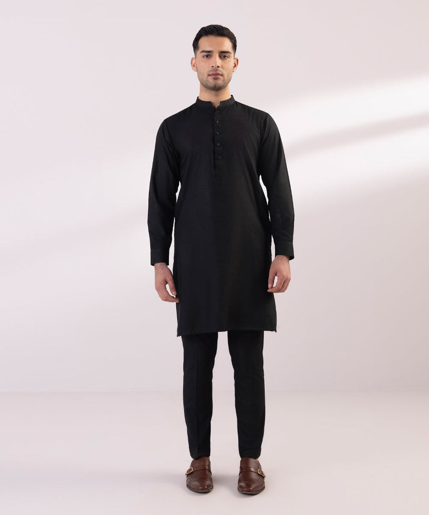 Kurta PajamaElevate your seasonal look in our black wash & wear jacquard straight kurta paired with trouser.