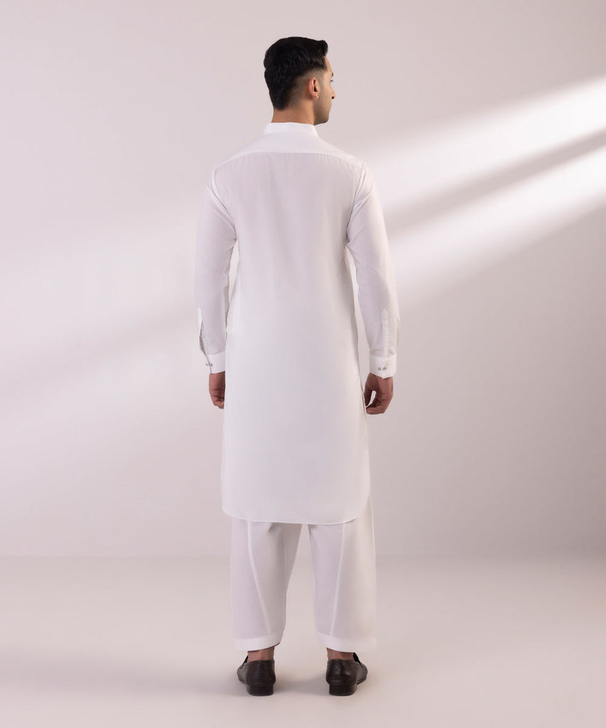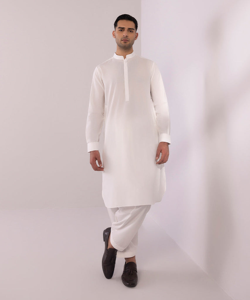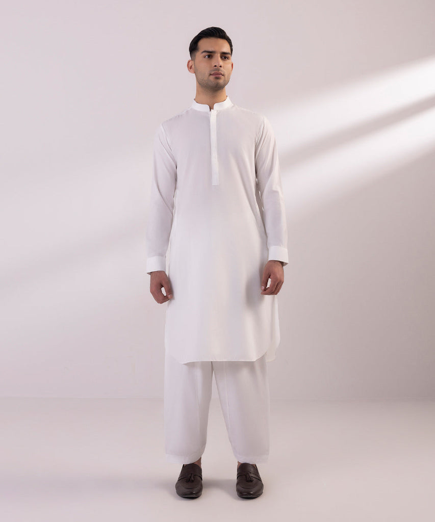 Elevate your seasonal look this summer in our white wash & wear straight kurta paired with shalwar.