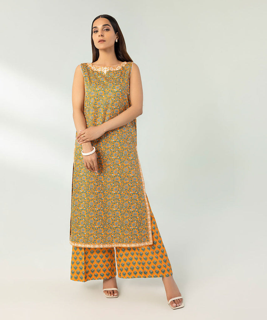 2-Piece Straight Kurta with TrousersTwin with your little one in our two-piece embroidered suit featuring a straight ...
