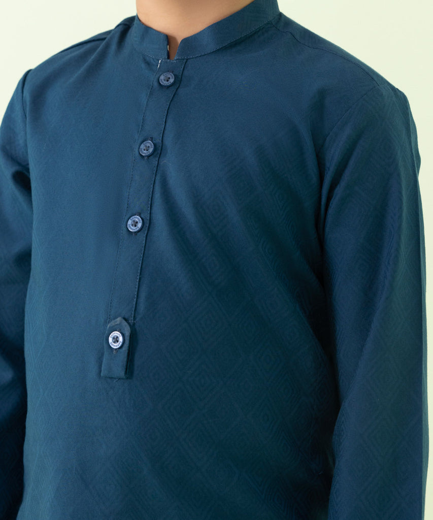 Dress your little one in our blue jacquard kurta featuring straight cut & print detailing.