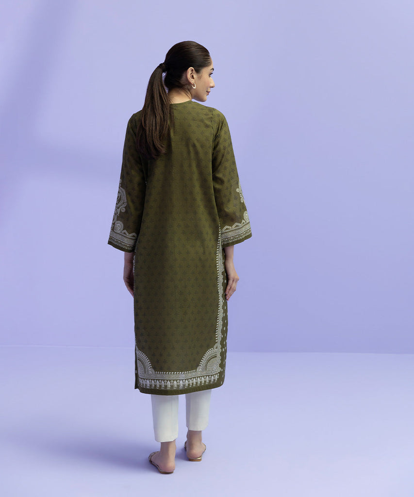 Refresh your wardrobe with this green intricately illustrated A-line silhouette.