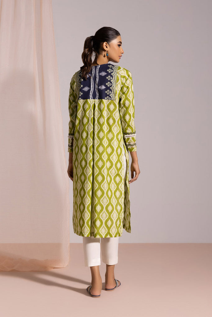 Printed Embroidered Front, Printed Back, Round Neckline with Slit, Full Sleeves with Embroidered Border