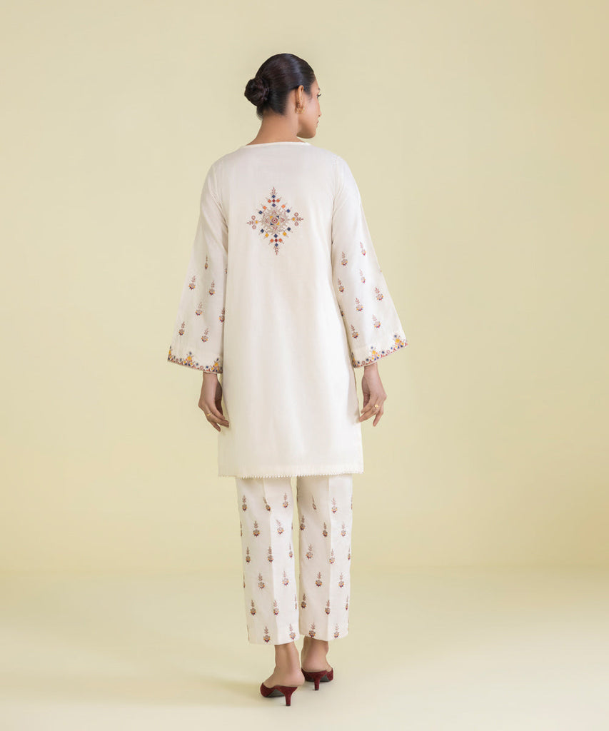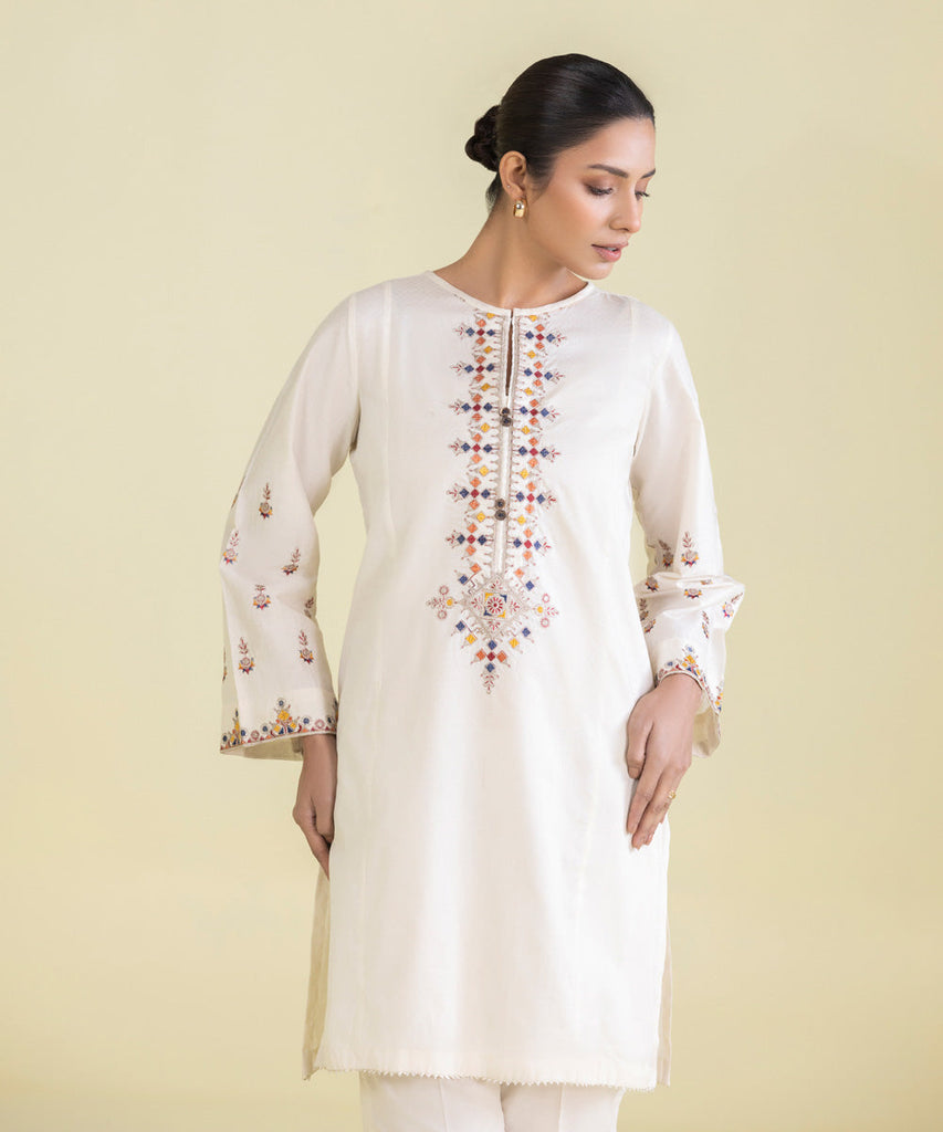 Plain Front With Embroidered Neckline, Plain Back With Embroidered Motif, Full Embroidered Sleeves, Full Embroidered Neckline