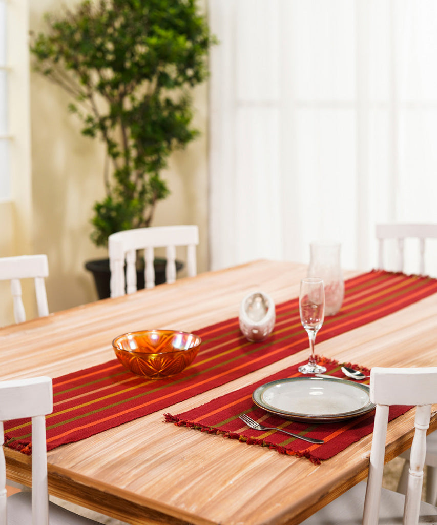 Elevate your space with our table runner featuring woven dobby design featuring stripes.  Colour: Multi Fabric: Woven...