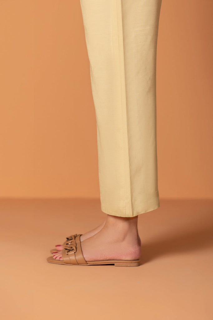 Enliven your outfit with this neatly curated beige silk straight pants.