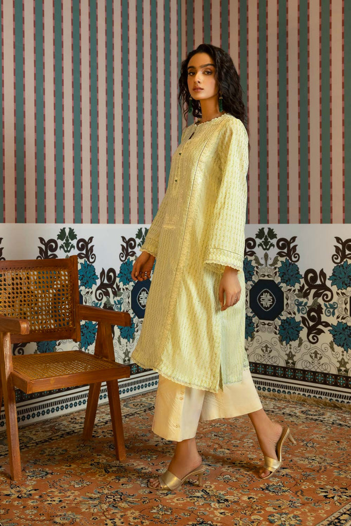 Elevate your look with this contemporary textured lawn shirt imbued in light