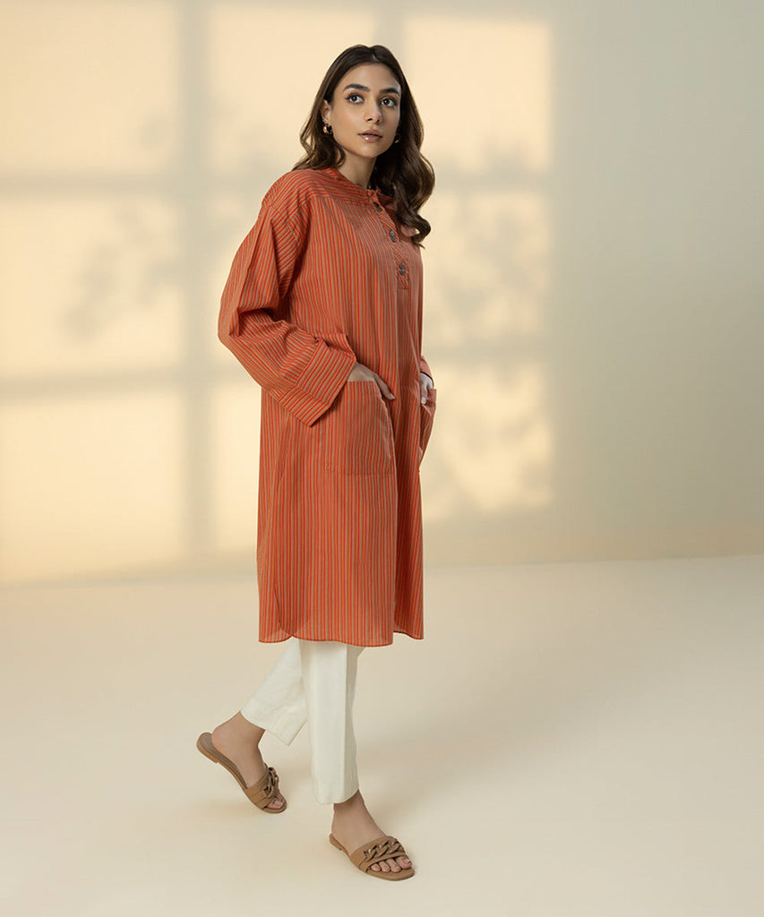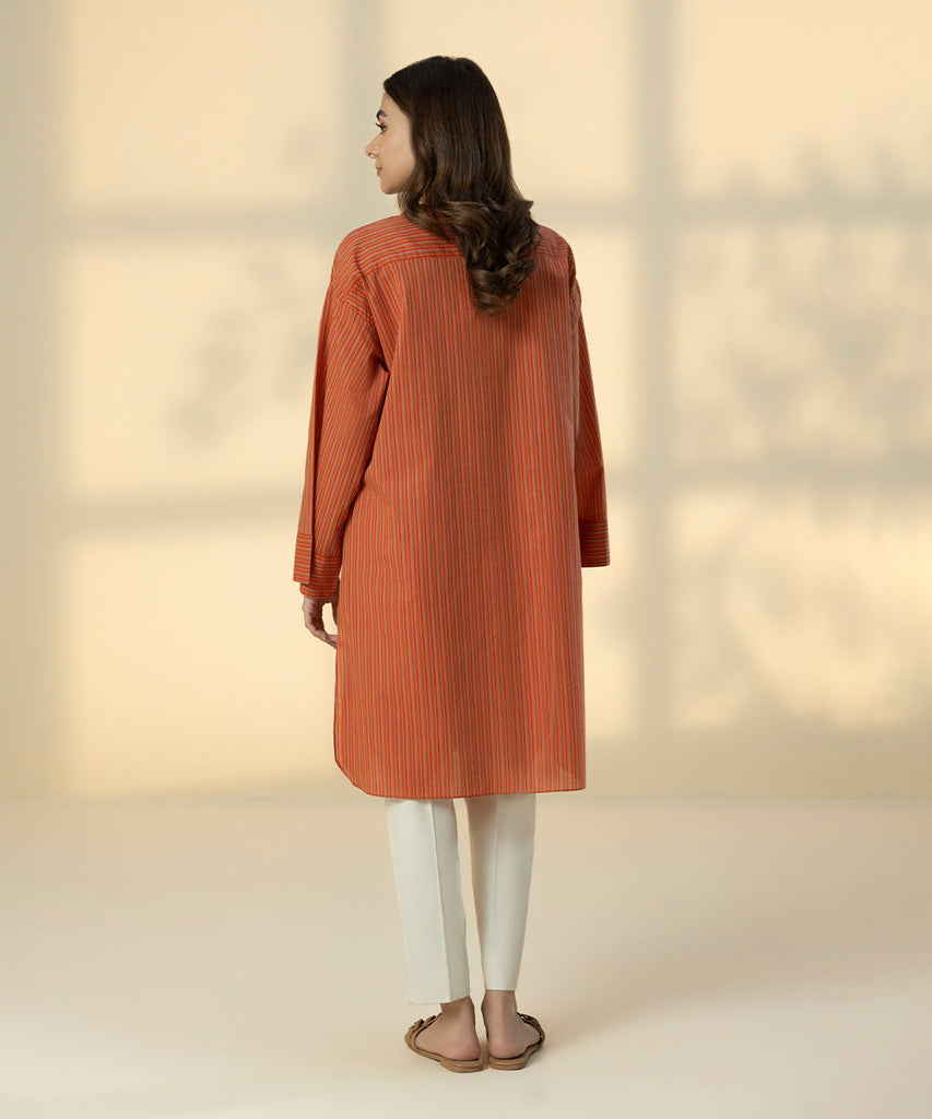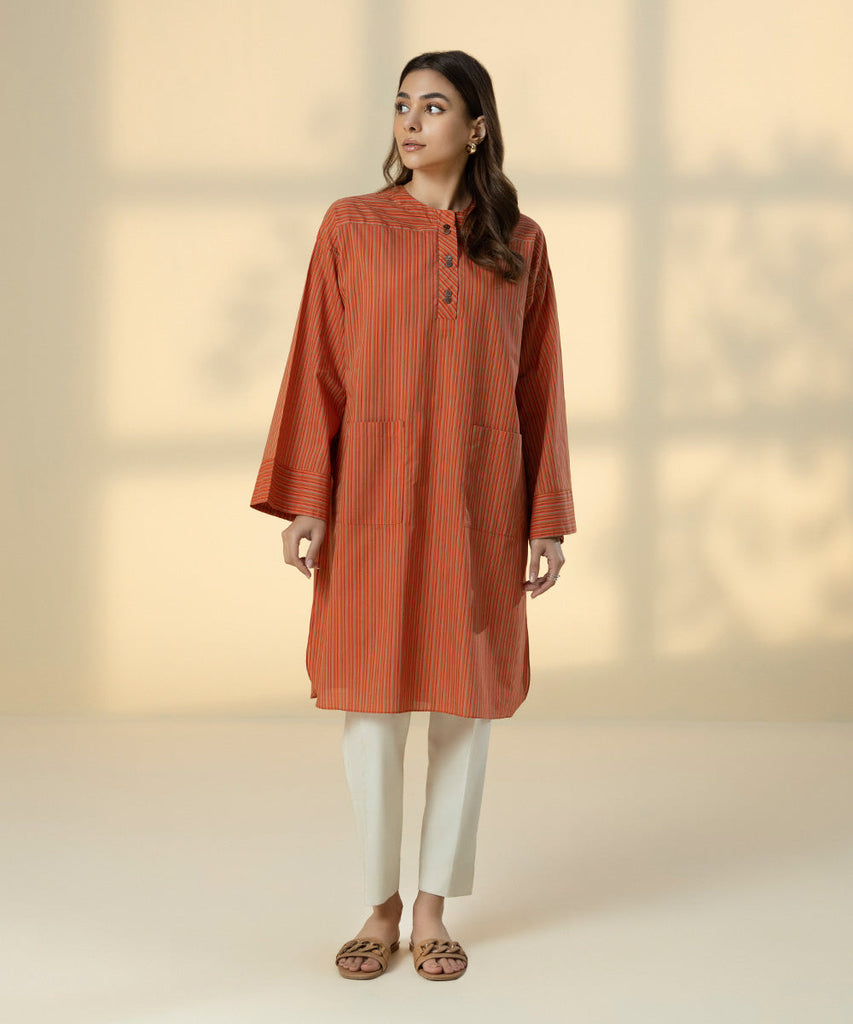 Step in style this summer with our fusion printed shirt in solid peach.