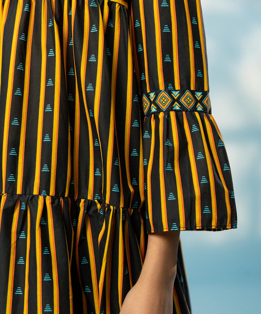 Printed front, Printed back, Round Neckline with split, Full Sleeves.