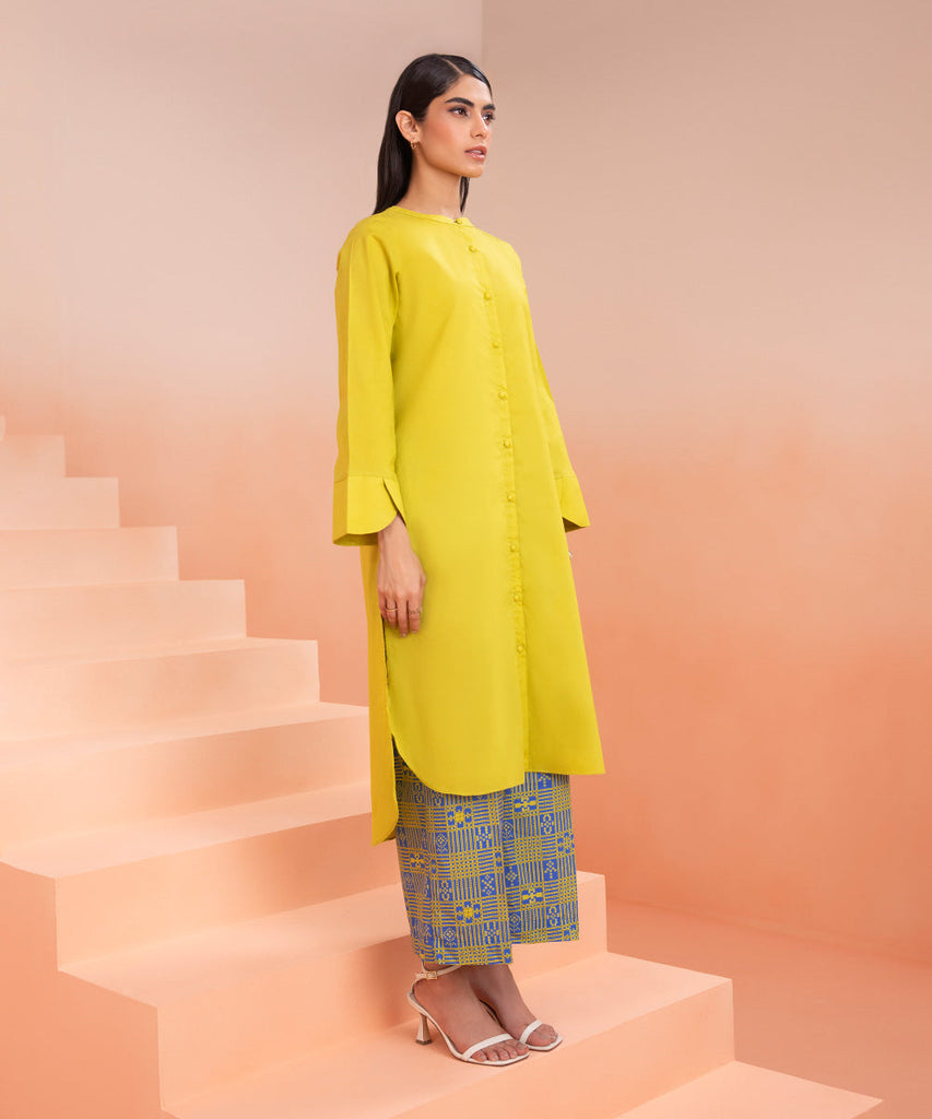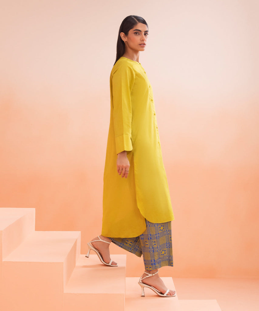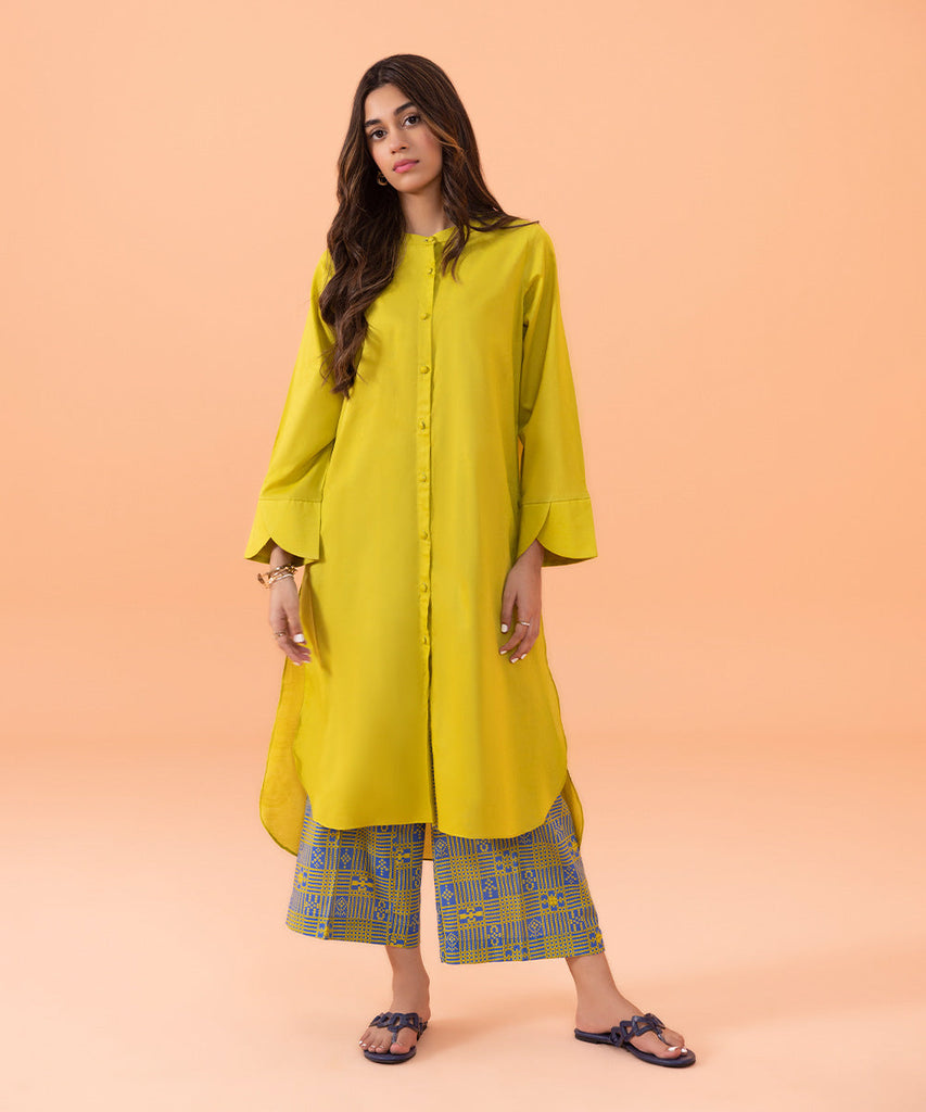 Dyed Front, Dyed Plain Back, Full Dyed Sleeves, Band Neckline With Slit