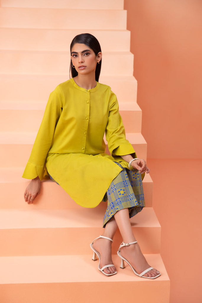 Upgrade your wardrobe with our light green self jacquard straight silhouette.