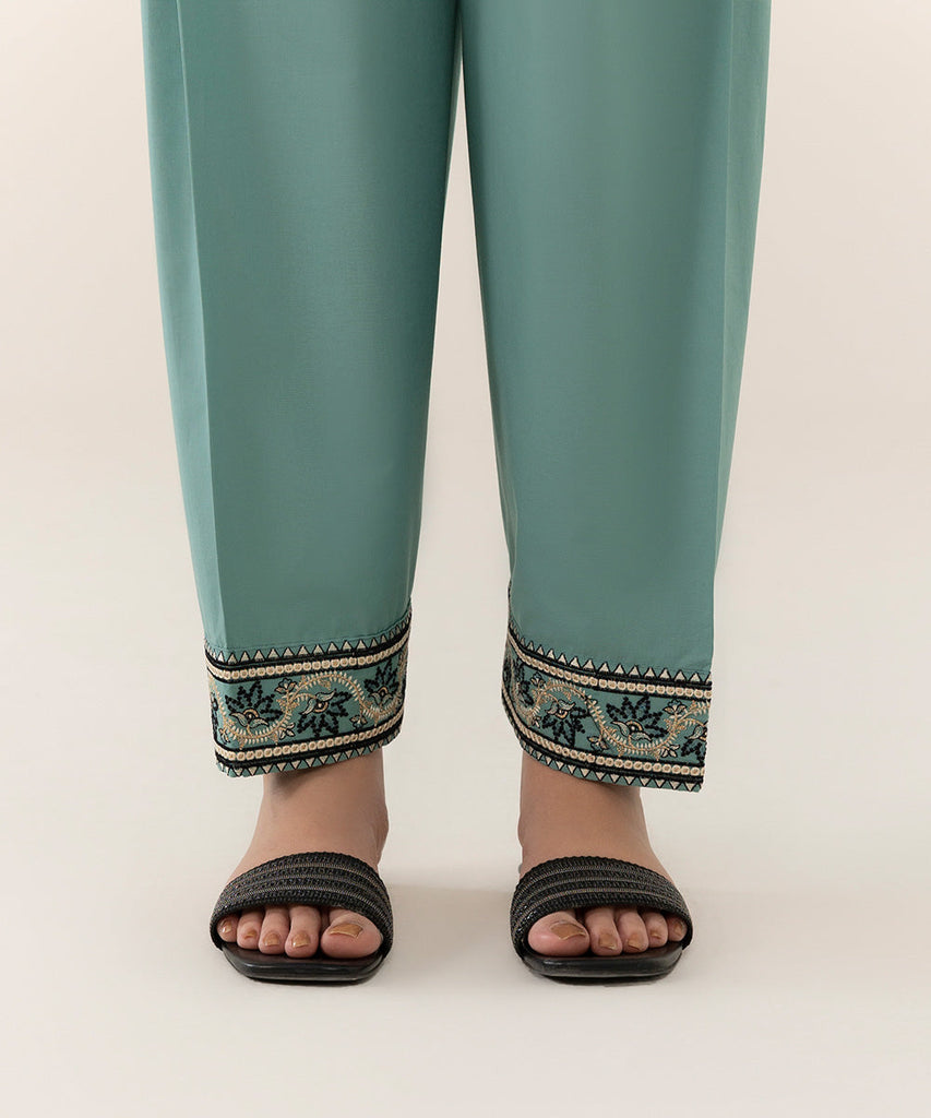 Enhance your outfit with our green embroidered cambric shalwar. Shalwar Colour: Green Fabric: Cambric SIZE & FIT ...