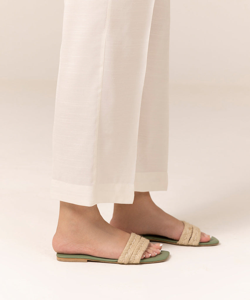 Enhance your outfit with our white straight pants. Straight Pants Colour: White Fabric: Viscose Raw Silk SIZE & F...