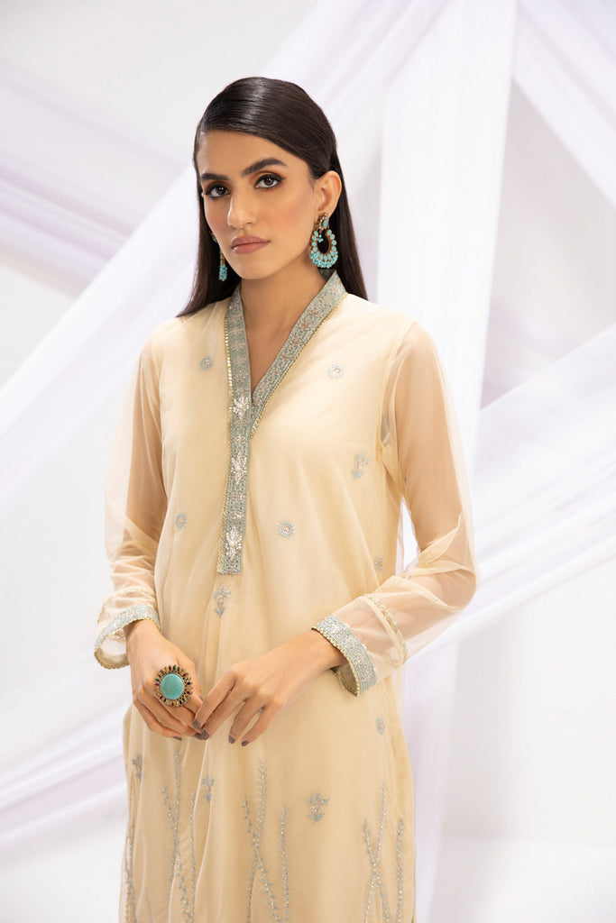 A line Shirt Refresh your wardrobe with soft hues of cream with this embroidered net A line silhouette. Details: Em...