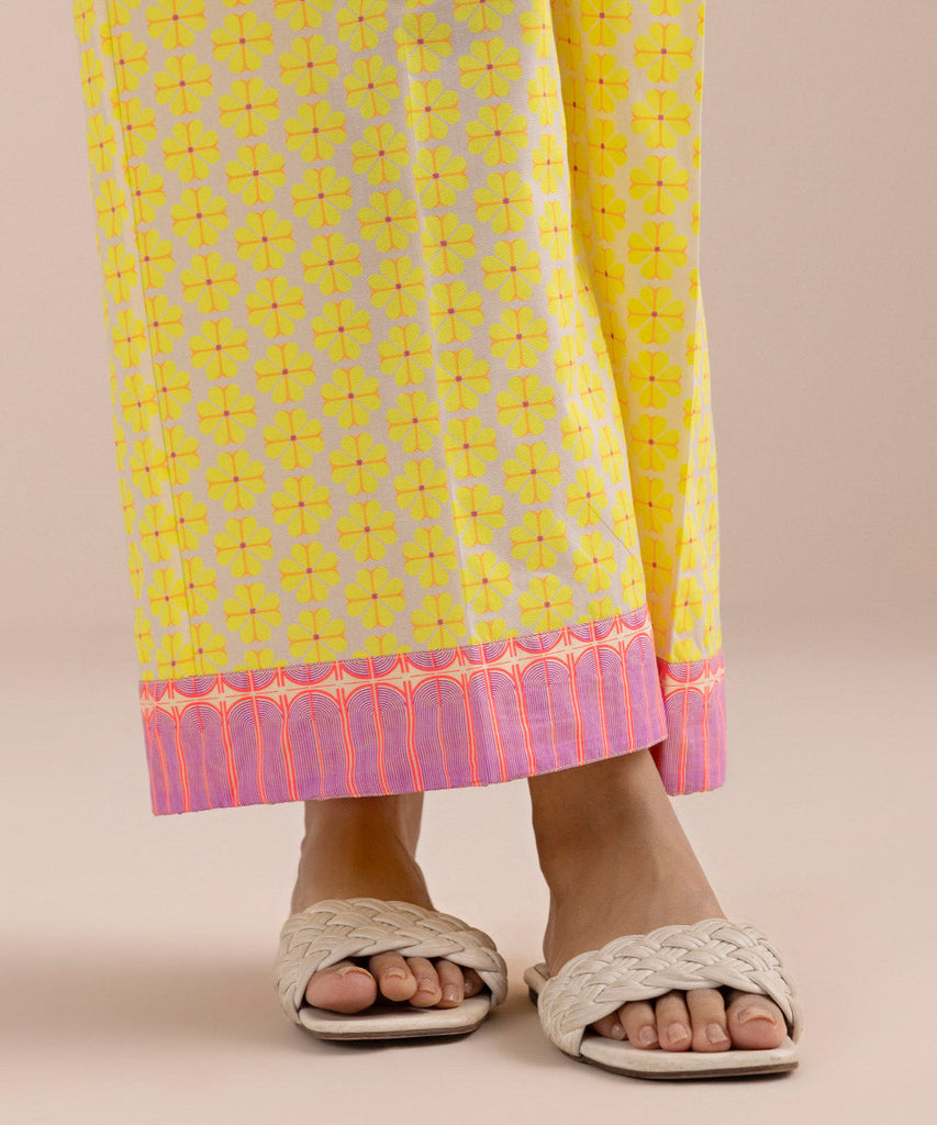 Complete your seasonal outfit with our neon yellow, printed cambric culottes.