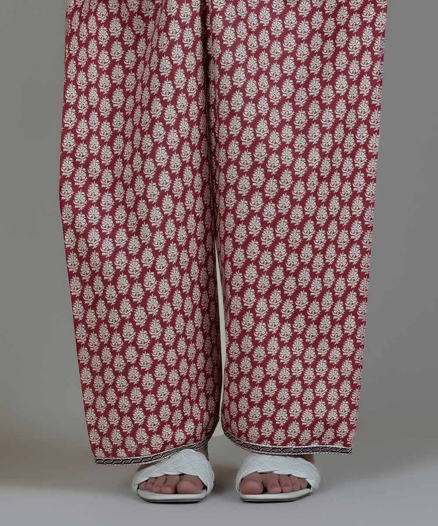 Complete your Eid look in our red printed cambric wide legged shalwar.