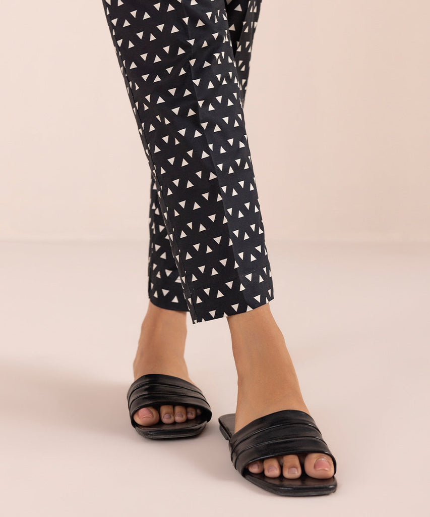 Complete your outfit with our black printed cigarette pants in stretchable fabric.