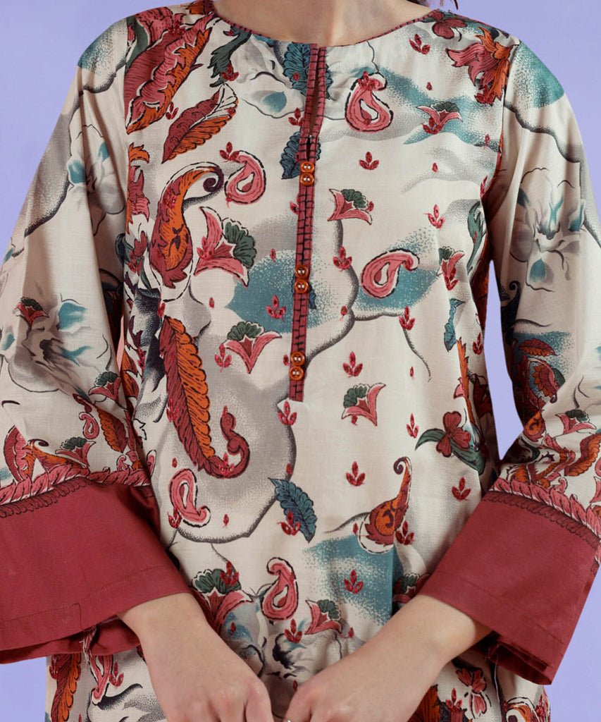 Printed Embroidered Front, Printed back, Full Sleeves, Round Neck with slit