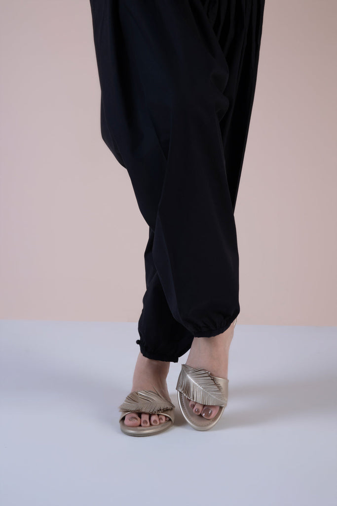 Complete your summer outfit with a ready to wear black cambric shalwar.