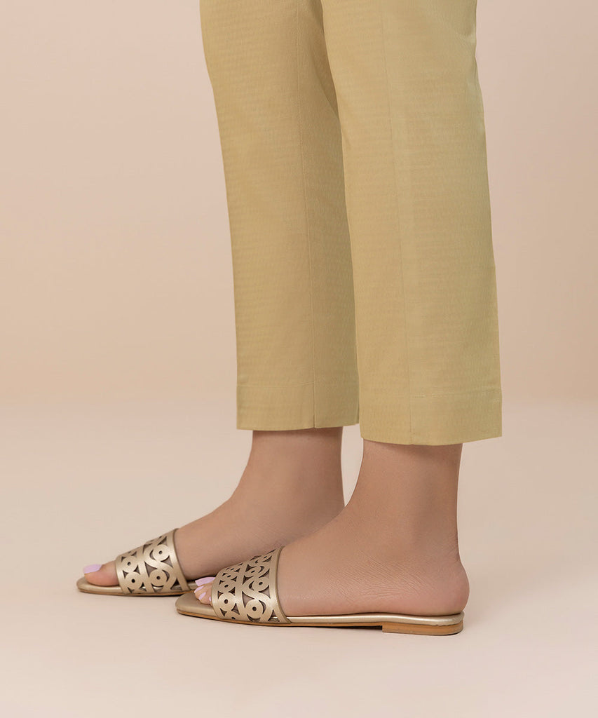 Cigarette Pants Colour: Beige Fabric: Dobby