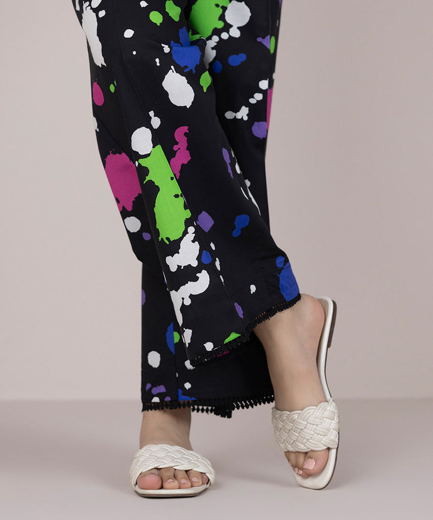 Complete your seasonal outfit with our black printed cambric, lace culottes.