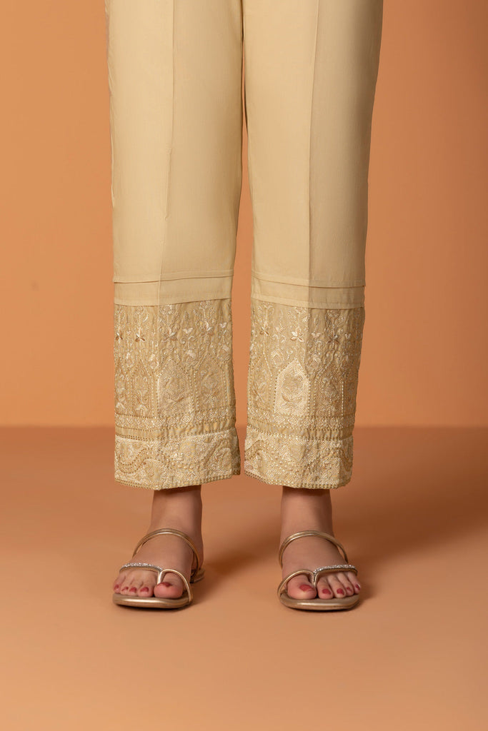 Straight Pants Elevate your look with beige straight pants accented with an embroidered hem. Details: Colour: Beige ...