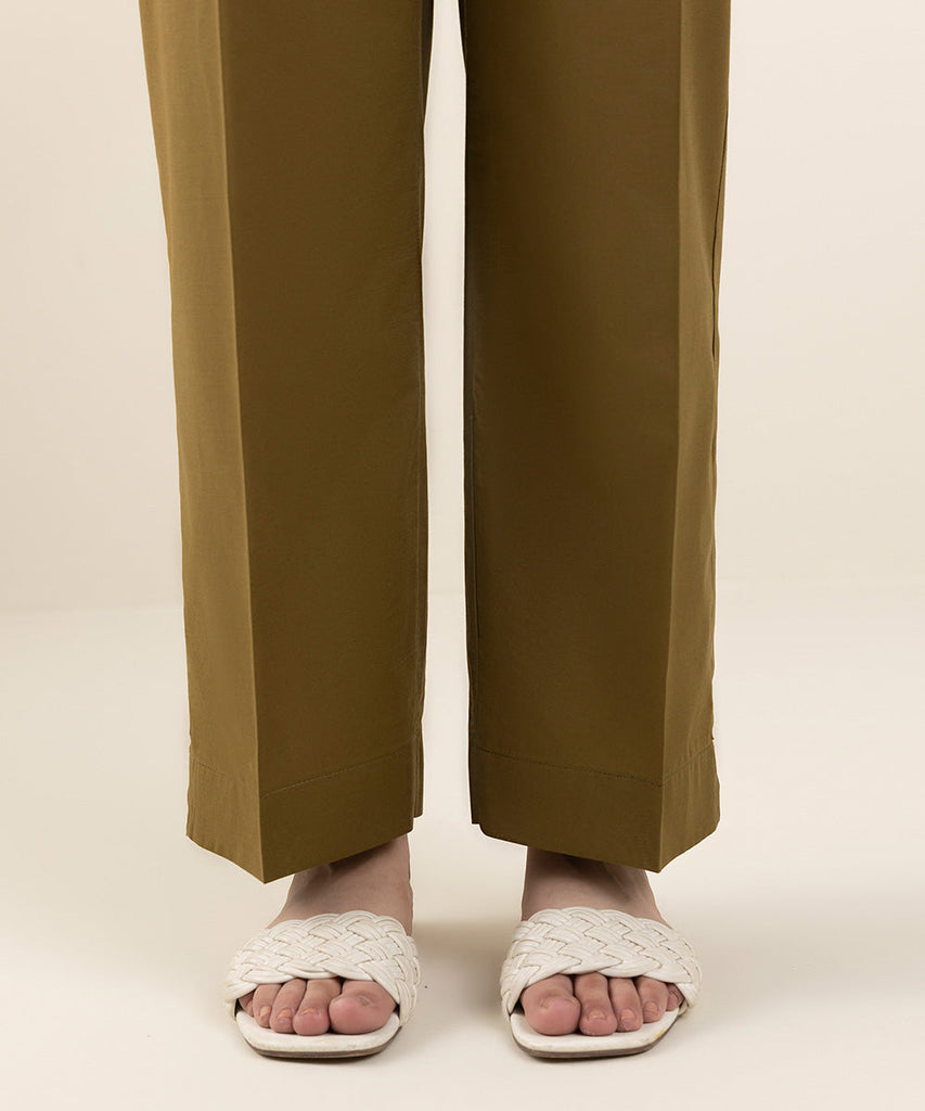 Straight PantsColour: Brown OliveFabric: Textured Lawn...