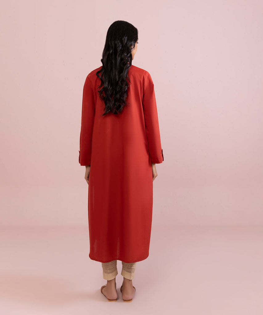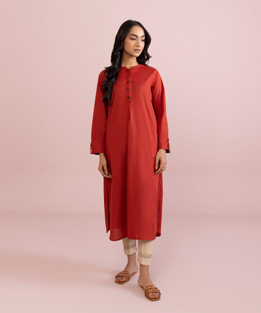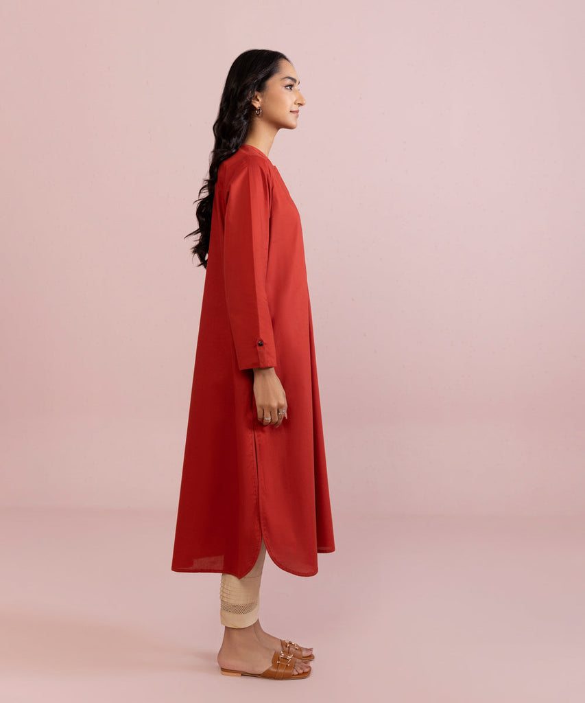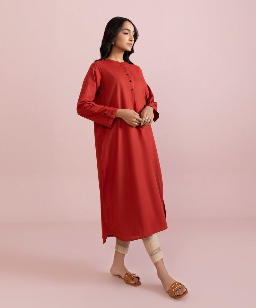 Plain Front, Plain Back, Full Sleeves, Band Neck With Placket