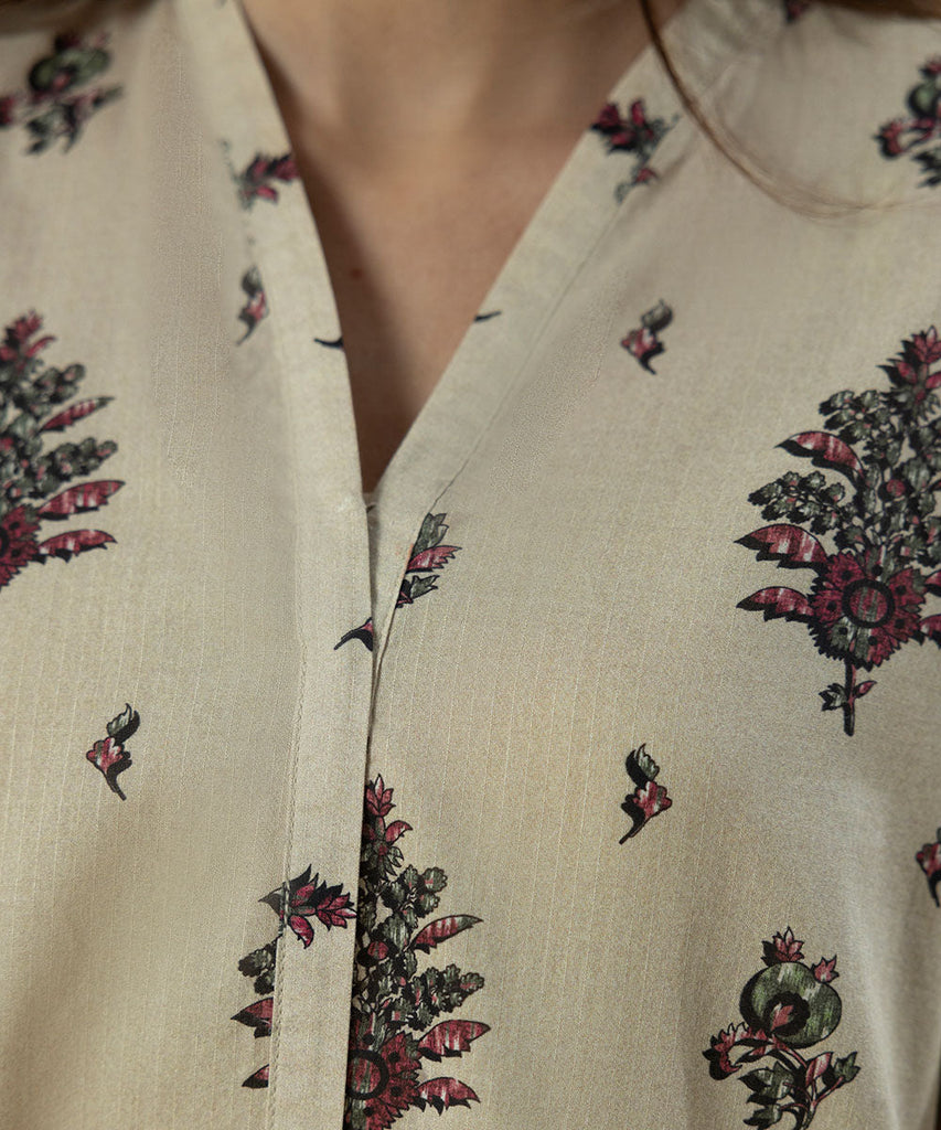 Printed front, Printed back, Y Neckline, Full Sleeves.