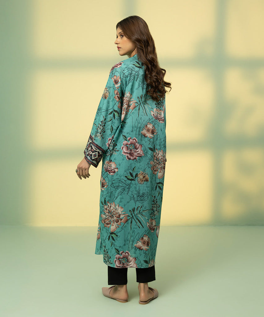Printed front, Printed back, Band Neckline with placket, Full Sleeves.