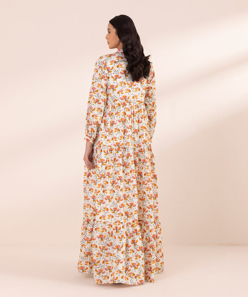 Tier DressPerfect your summer style with our off-white printed tier dress featuring a band neckline with slit and tas...