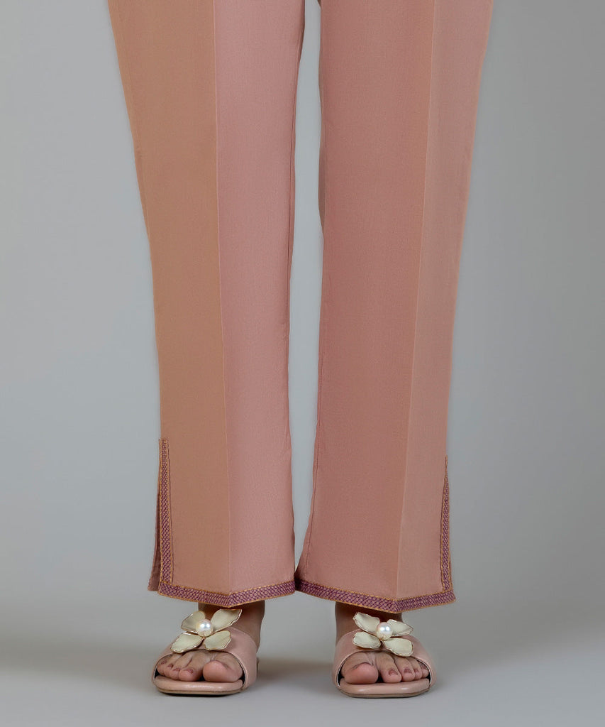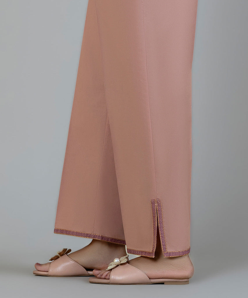 Complete your Eid look in our deep tea pink embroidered cambric straight pants with slit.