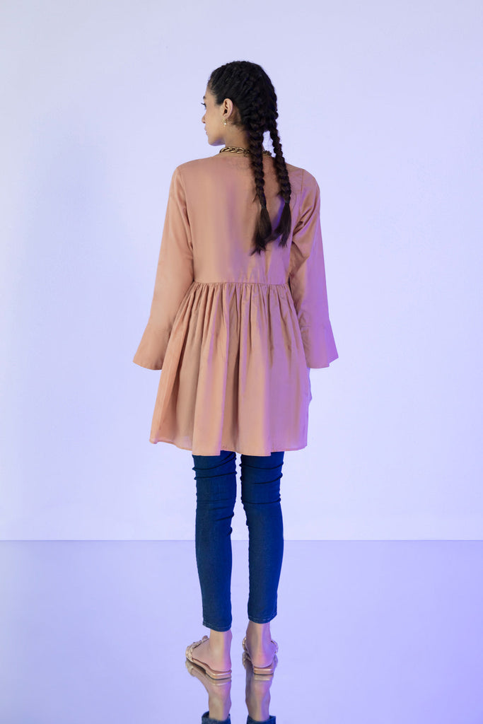 Fusion Kurti Look refreshing in this airy silhouette imbued in a modern shade of tea pink. Details: Plain front, Pla...