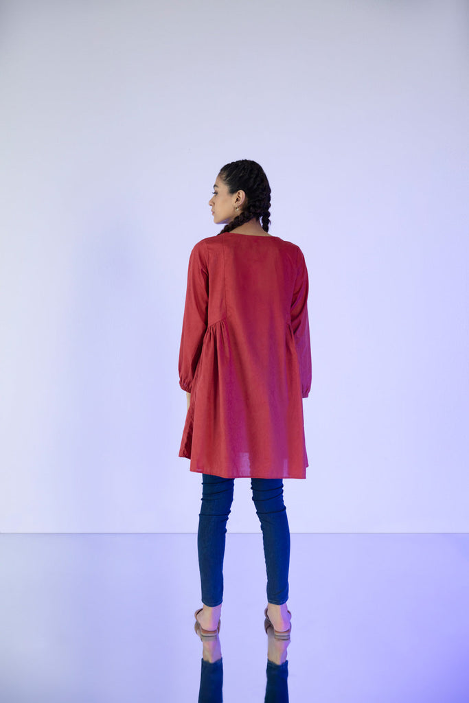 Fusion Kurti For an eye-catching summer look, adorn this flowy silhouette in hued in a captivating red. Details: Pla...