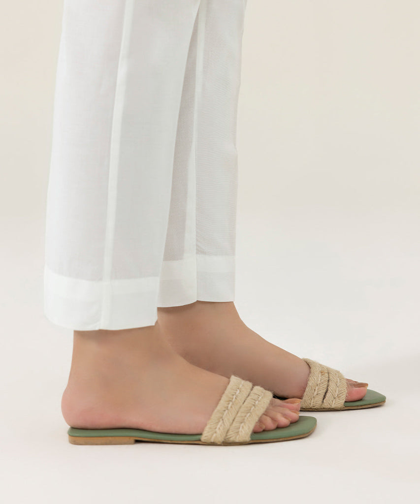 Enhance your outfit with our white cigarette pants. Cigarette Pants Colour: White Fabric: Cambric SIZE & FIT Mode...