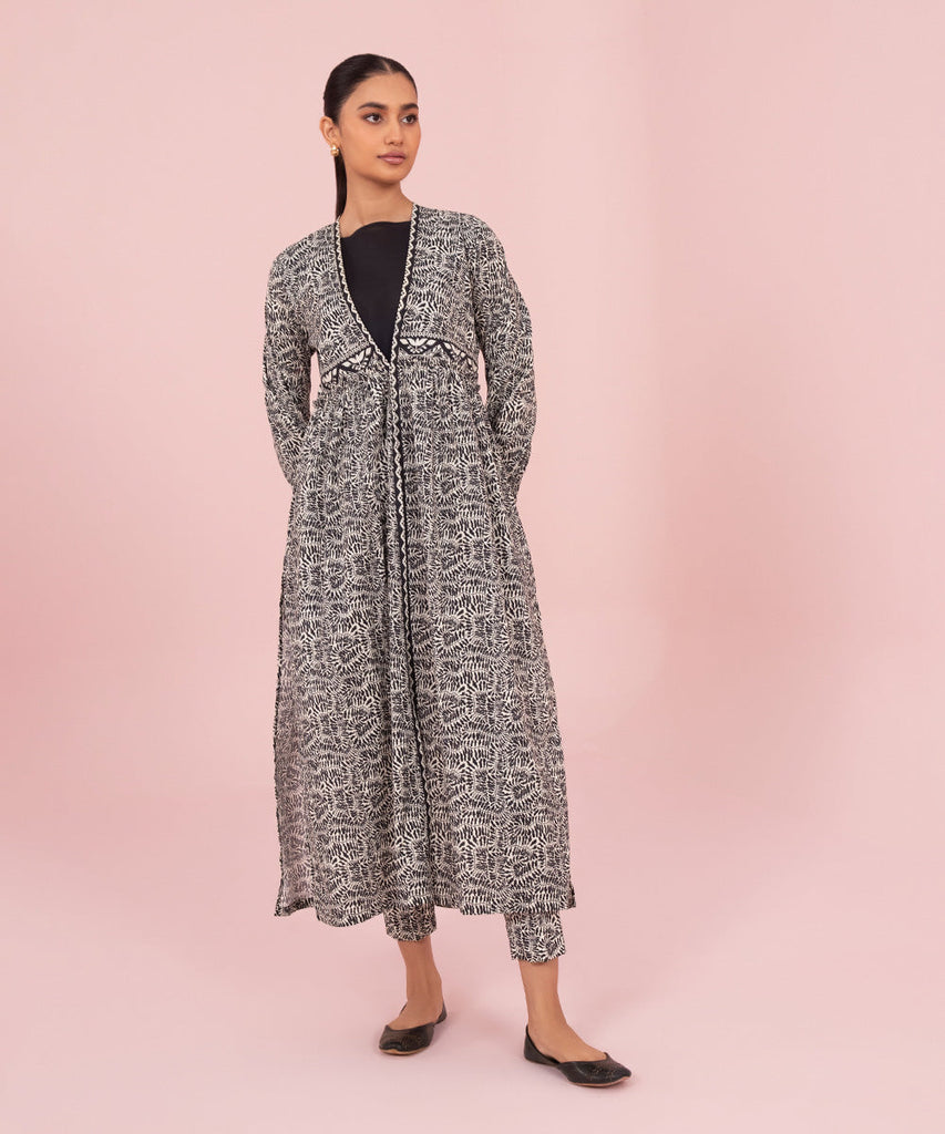 A relaxed yet fashionable ensemble in black and white that effortlessly works through the day.Unstitched 1-Piece Shir...