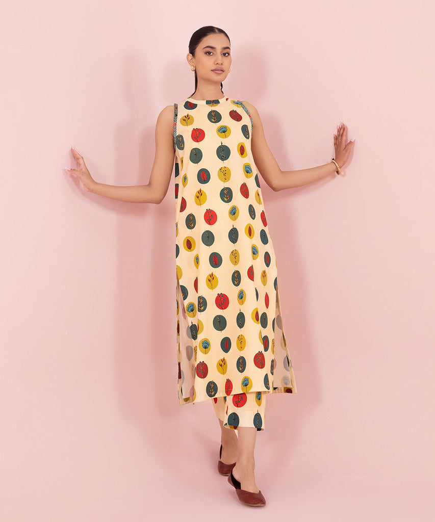 Our captivating new collection beautifully harmonizes delicate florals with contemporary geometric patterns- our multicoloured cambric ensemble evokes a sense of timeless elegance.