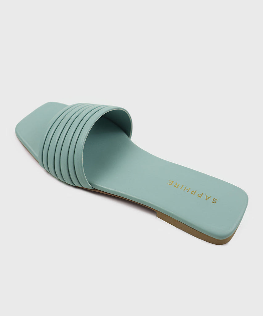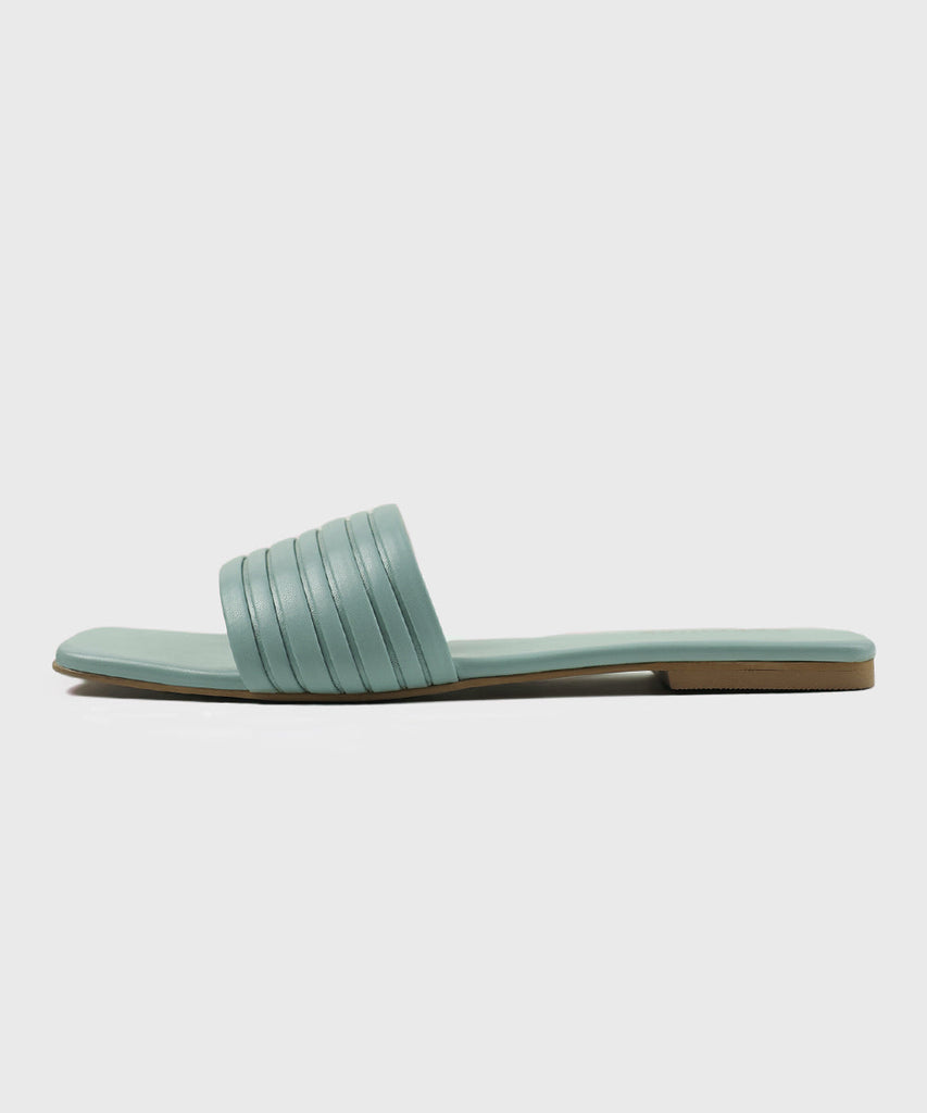 Complete your summer OOTDs in our must-have light blue square-toe flats with embossed details.