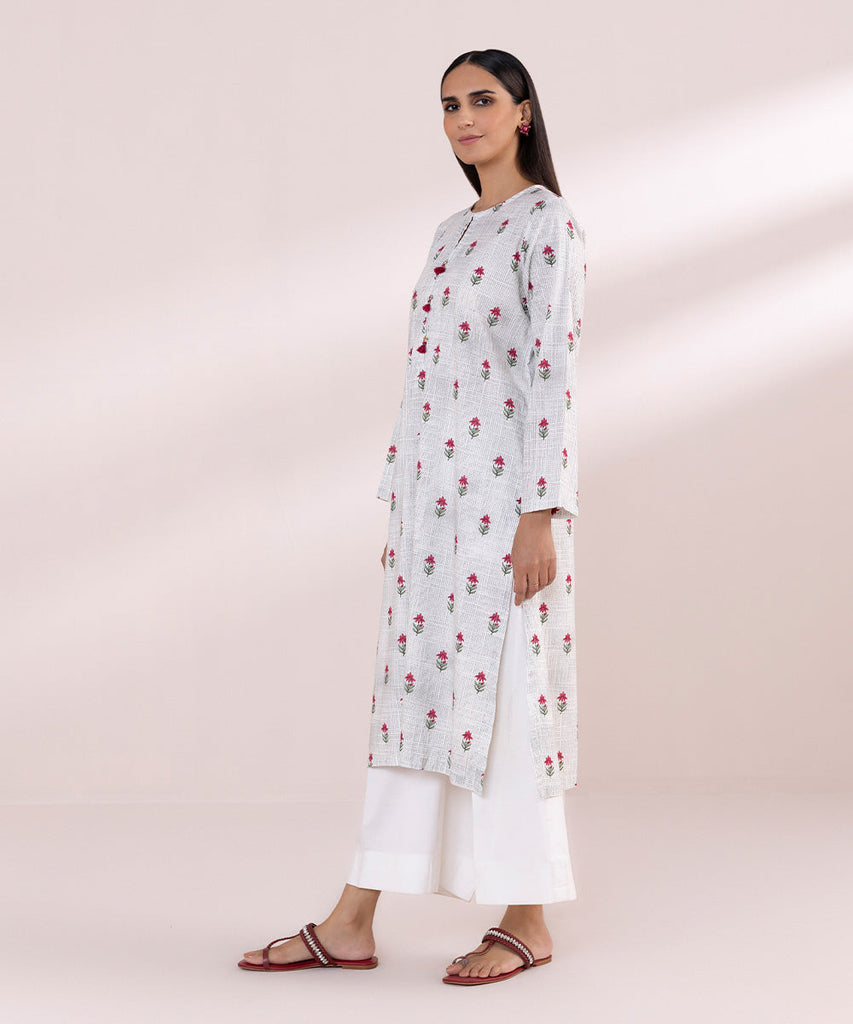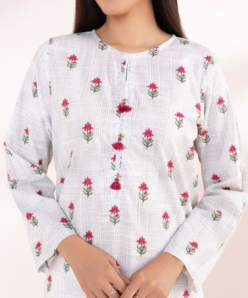 Printed Front, Printed Back, Full Sleeves, Round Neckline with a slit