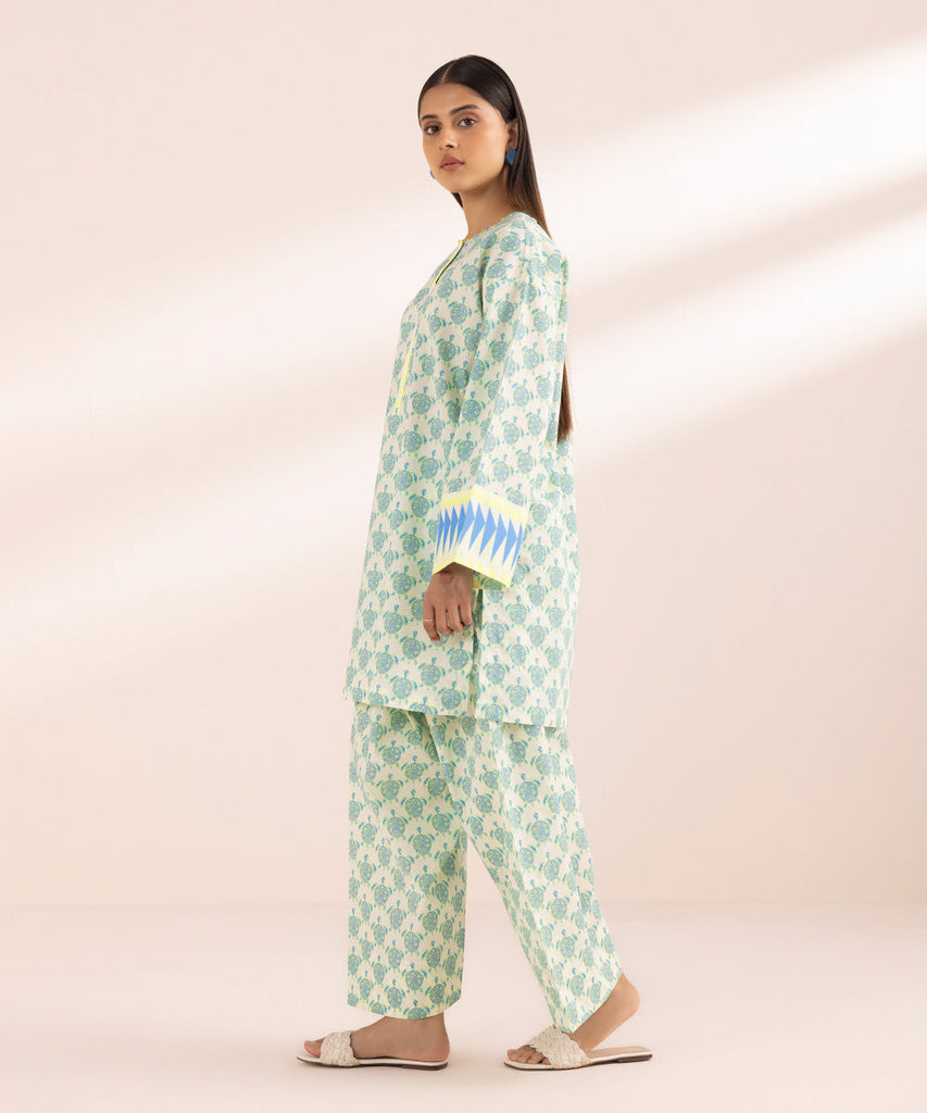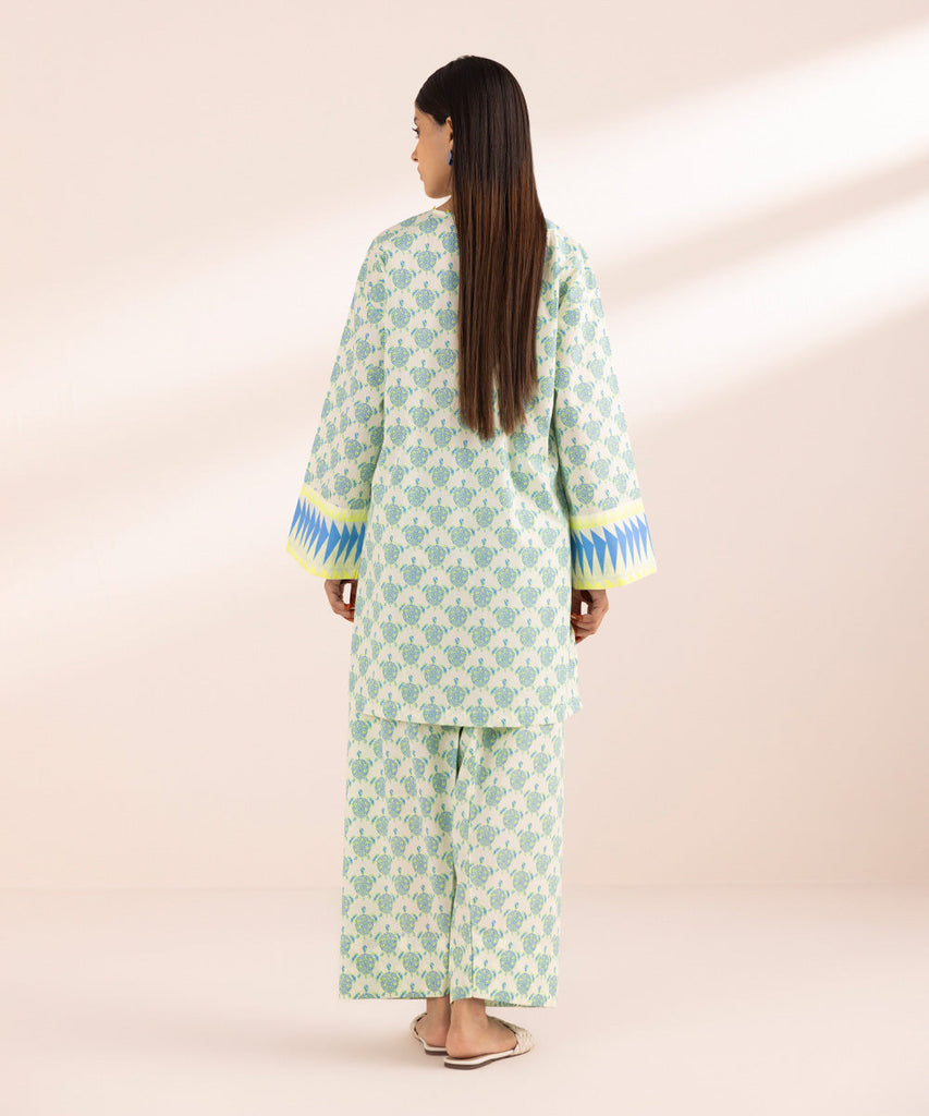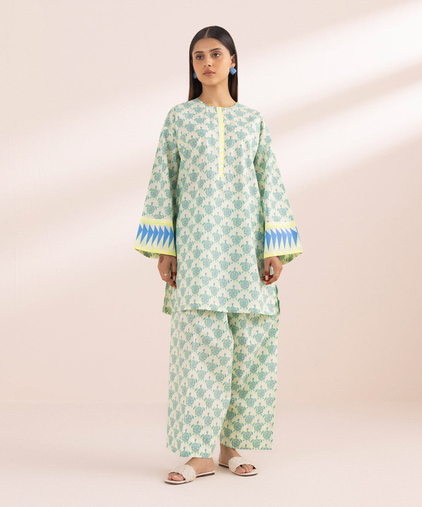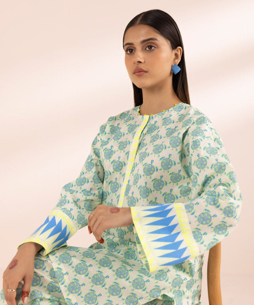 Printed Front, Printed Back, Full Sleeves, Round Neckline with a placket