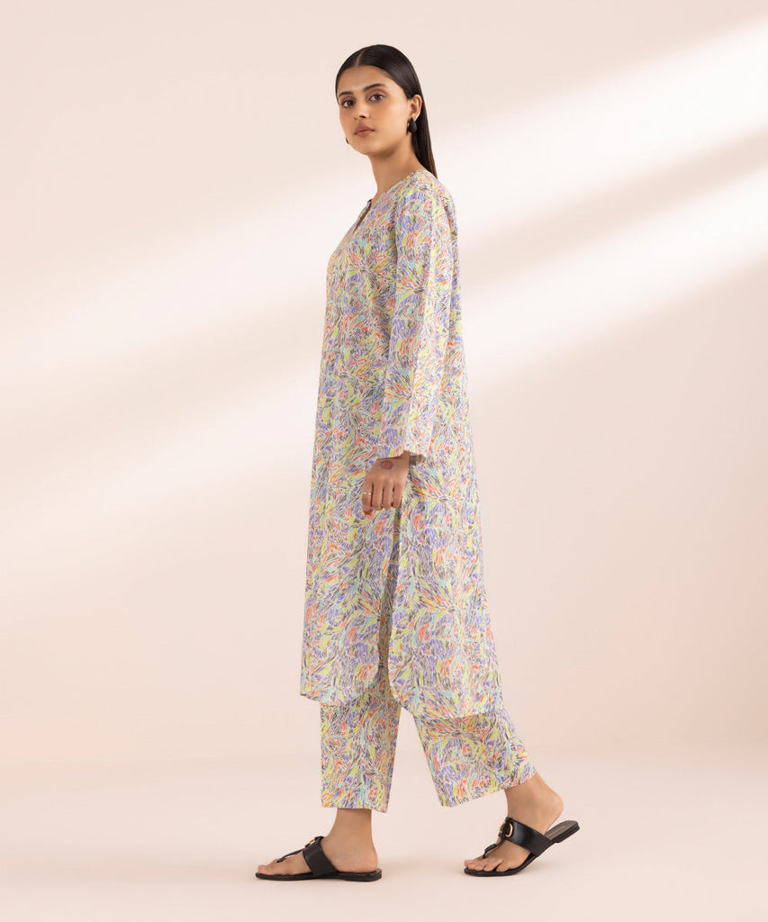 Channel effortless style in our multi-coloured, printed lawn, long A-line shirt.