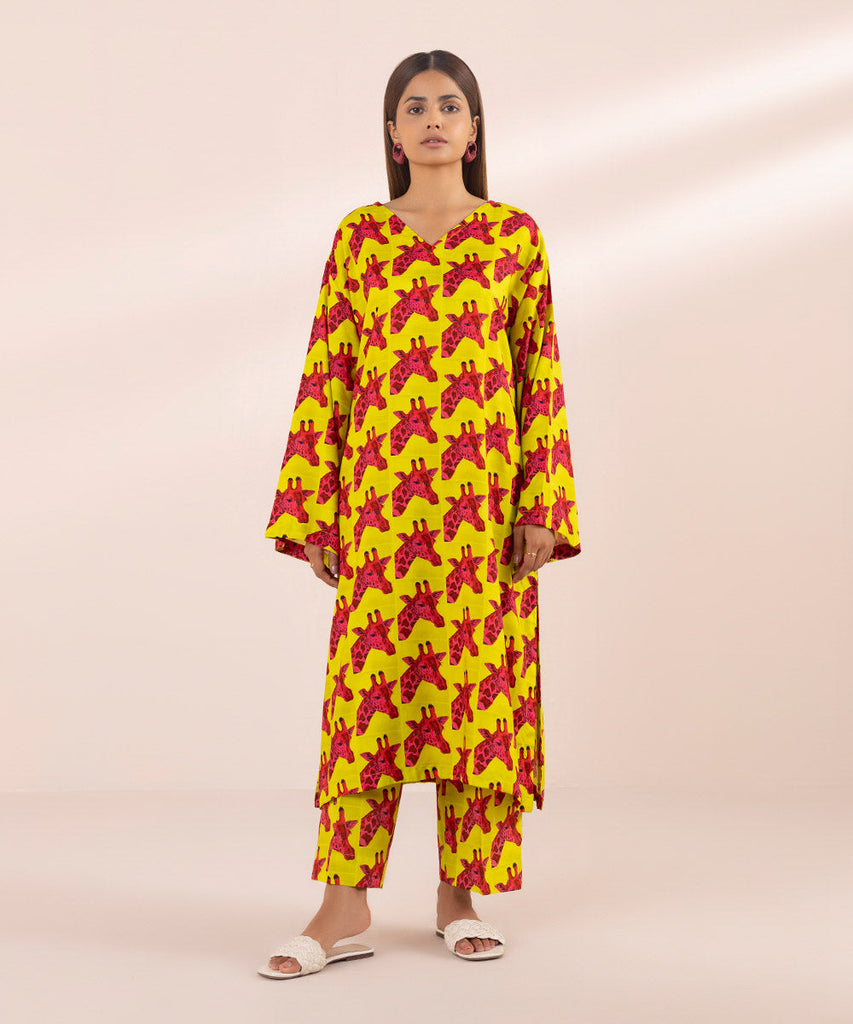 Straight KurtaMake a standout statement with our arabic lawn, lime green printed shirt featuring a V-neckline. Detail...