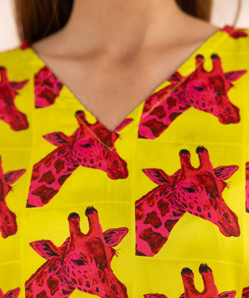 Make a standout statement with our arabic lawn, lime green printed shirt featuring a V-neckline.