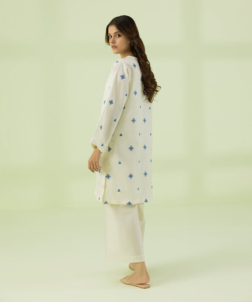 Boxy Shirt For a summer look don an off white embroidered linen boxy kurta.