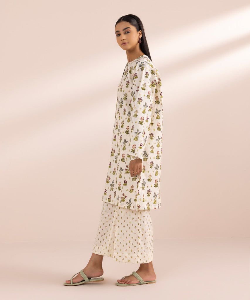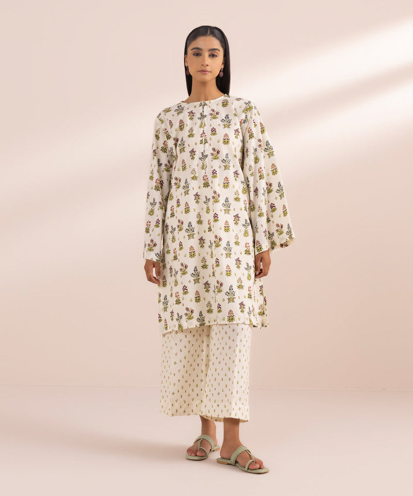 Printed Front, Printed Back, Full Sleeves, Round Neckline with slit